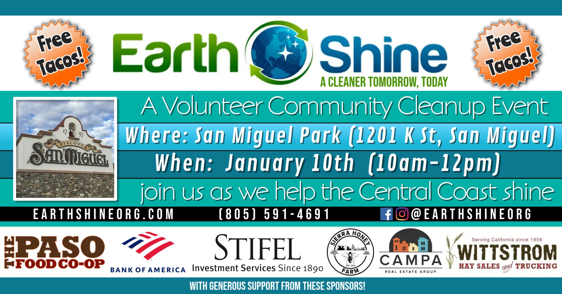 Each month Earth Shine hosts a Cleanup Event on the Second Saturday of the month in a different Central Coast community. These events are a great way to work together as a community to help the places we call home look their best.